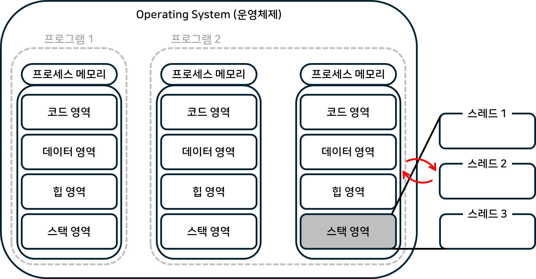 라. 운영체제, 프로세스, 메모리, 스레드 전체 구조